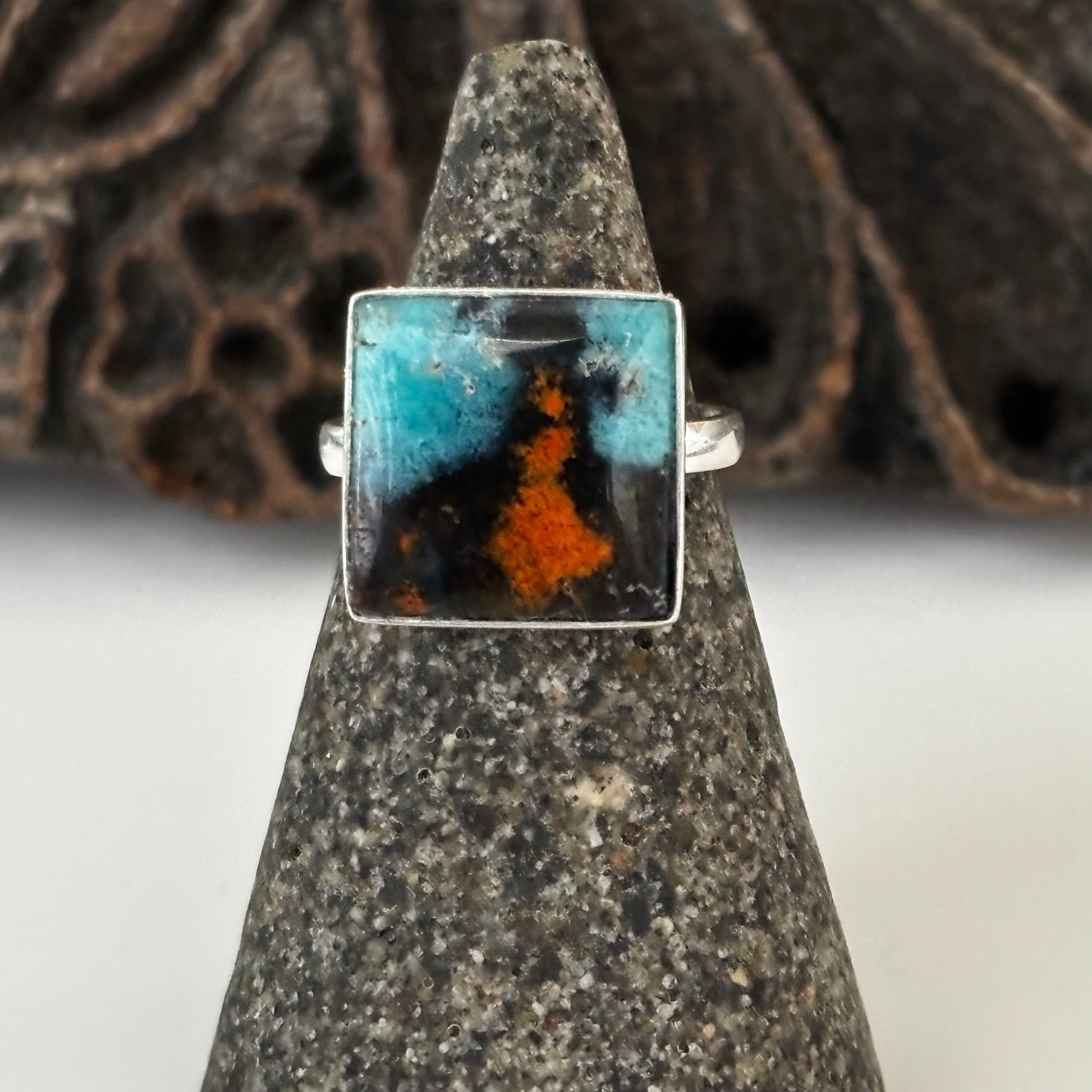 This rare stone began as wood millions of years ago, transformed through time into opal. Its deep blues and natural grain patterns tell a story of transformation and endurance. Set in sterling silver, it carries both history and calm energy — a perfect balance of nature and time.