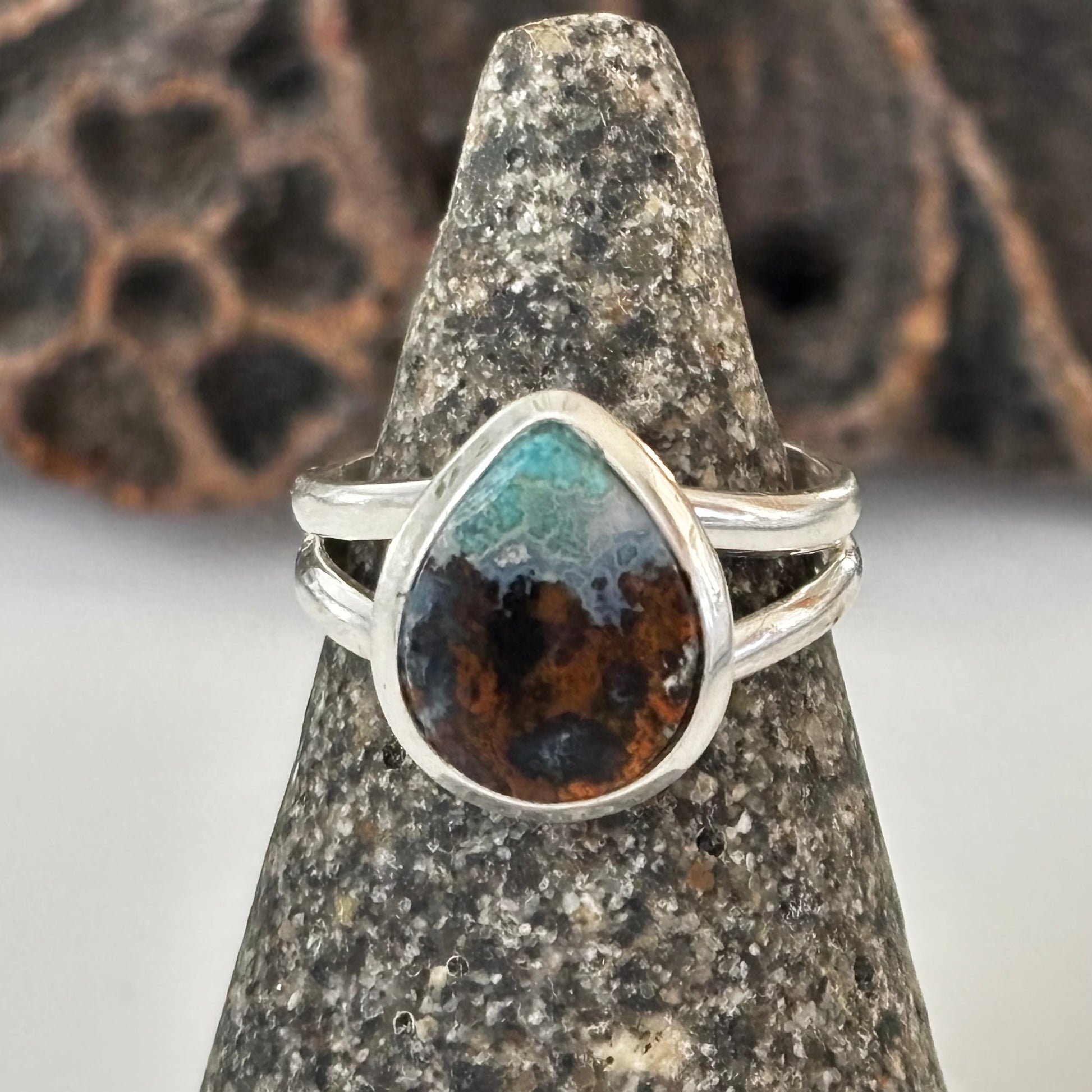 This rare stone began as wood millions of years ago, transformed through time into opal. Its deep blues and natural grain patterns tell a story of transformation and endurance. Set in sterling silver, it carries both history and calm energy — a perfect balance of nature and time.
