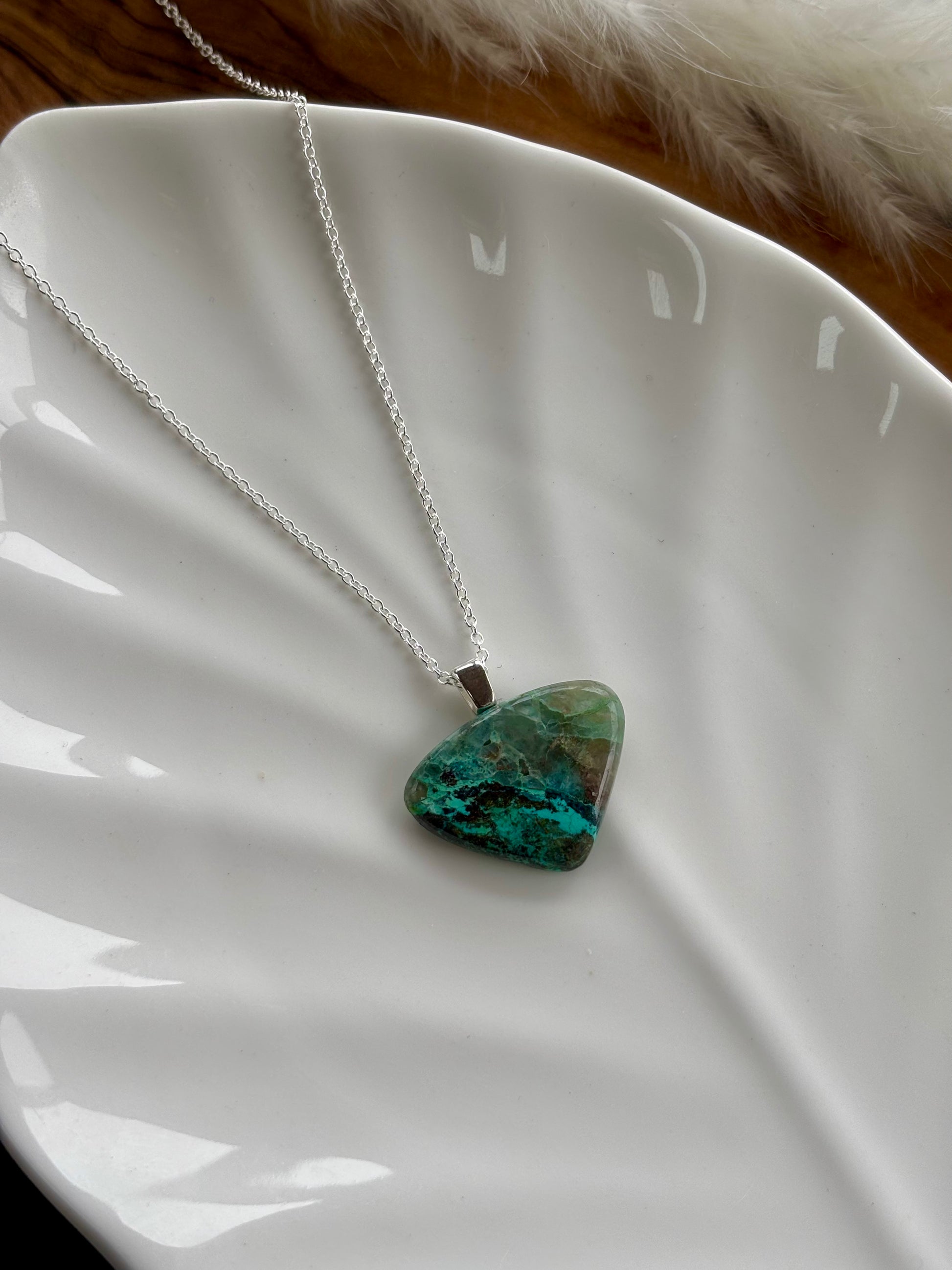 Chrysocolla is a stone of empowerment, communication , and calming. People who tend to get erratic and are hyper emotional during stressful situations need to carry a piece of Chrysocolla daily.
