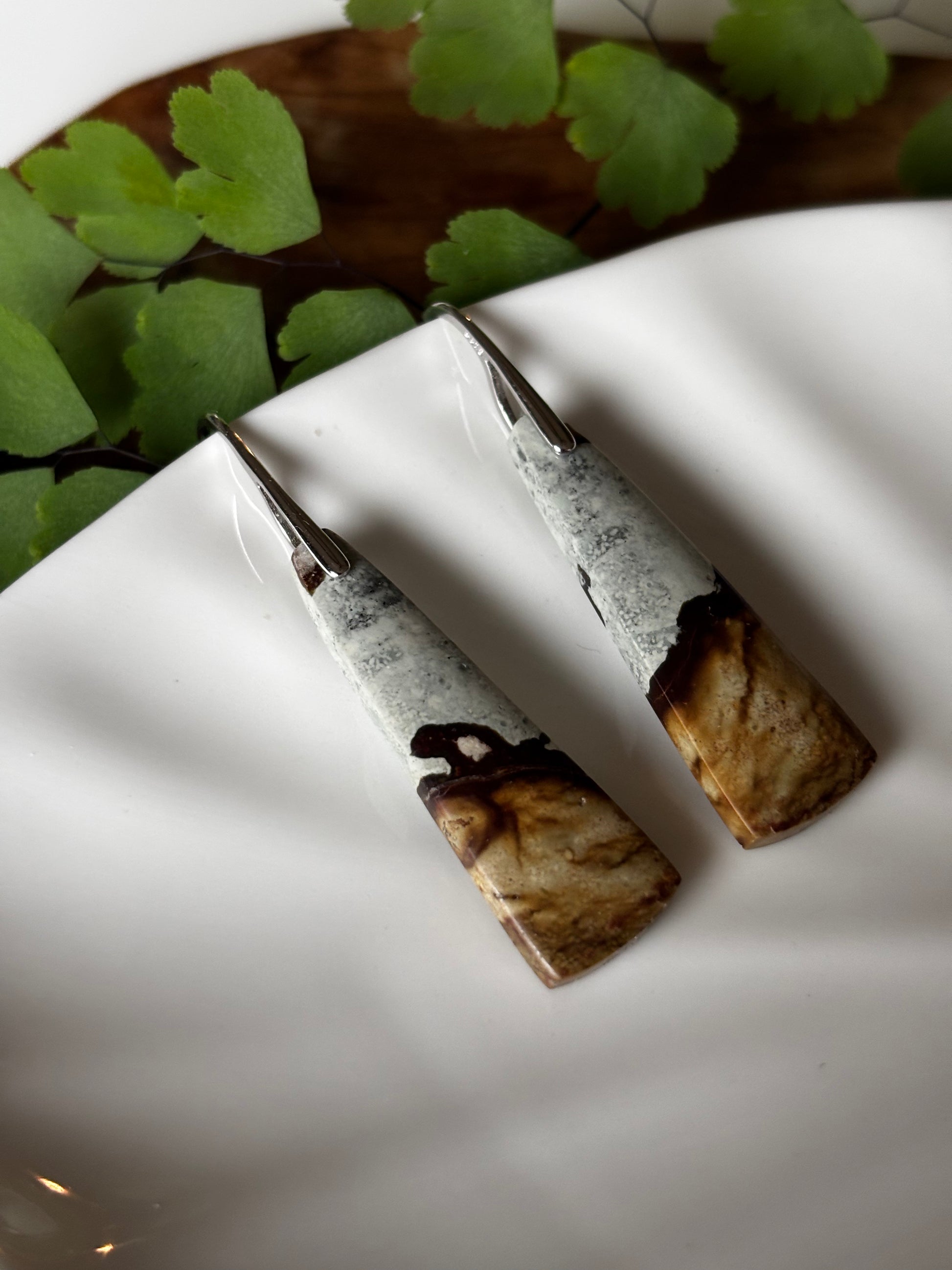 Full of rich, warm tones and natural patterns, Polychrome Jasper is a stone of action, inspiration, and vitality. It’s also deeply grounding, encouraging balance and a strengthened connection to Mother Earth. These earrings highlight the unique character of the stone, paired with sterling silver hooks for an earthy, elevated finish.